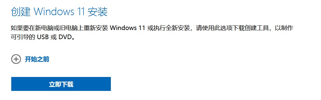 首先到微软官网下载安装工具,因为我是在新电脑上安装,所以选择“创建 Windows 11 安装”,如下图所示。