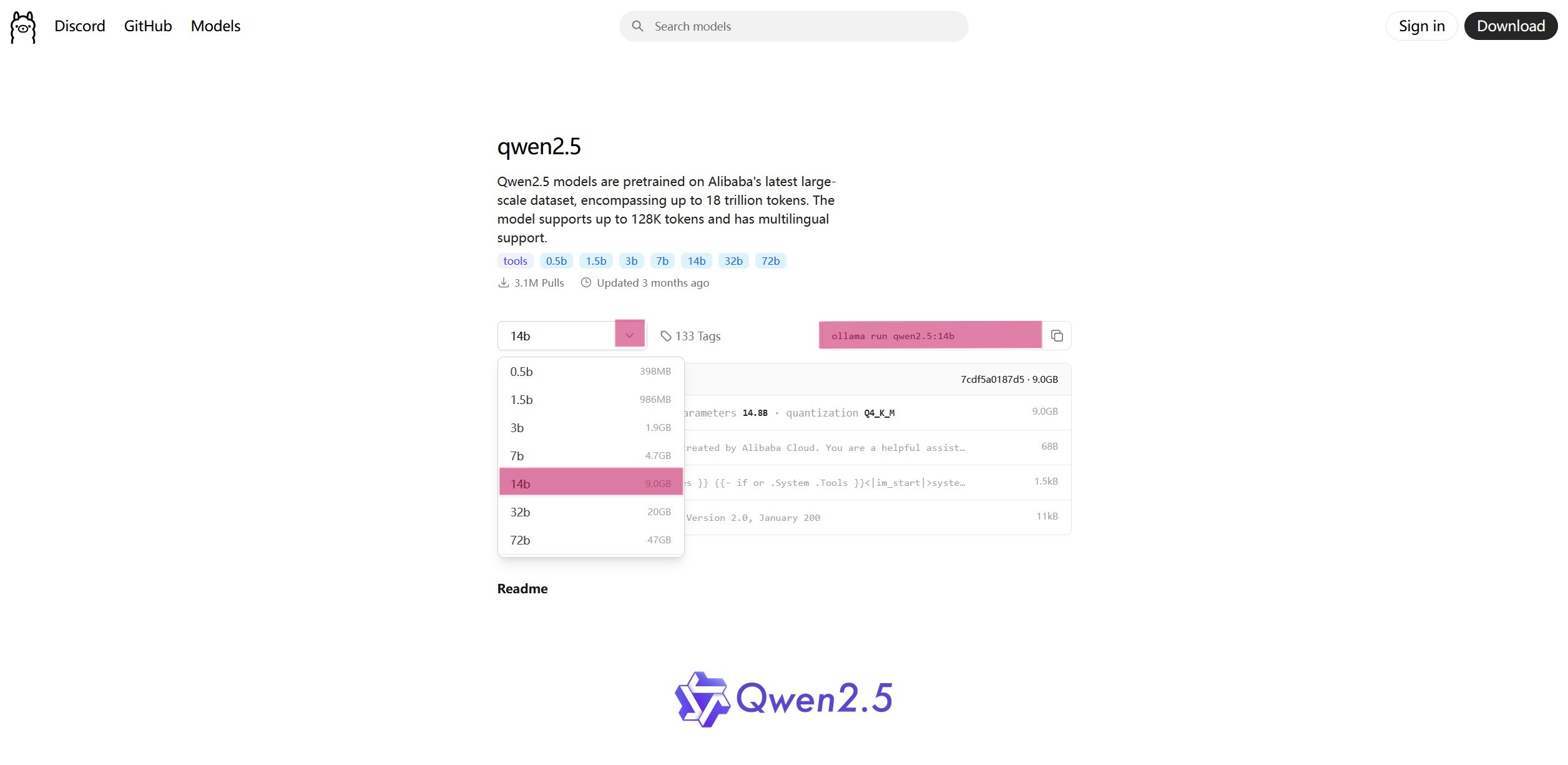 打开cmd,在 ollama官网 查找需要下载的模型,以千问为例,选择适合自己设备的大模型和参数,复制右侧的命令ollama run qwen2.5:14b到 CMD 中,便会自动下载对应模型,下载完成后就可以在 CMD 窗口进行对话了。