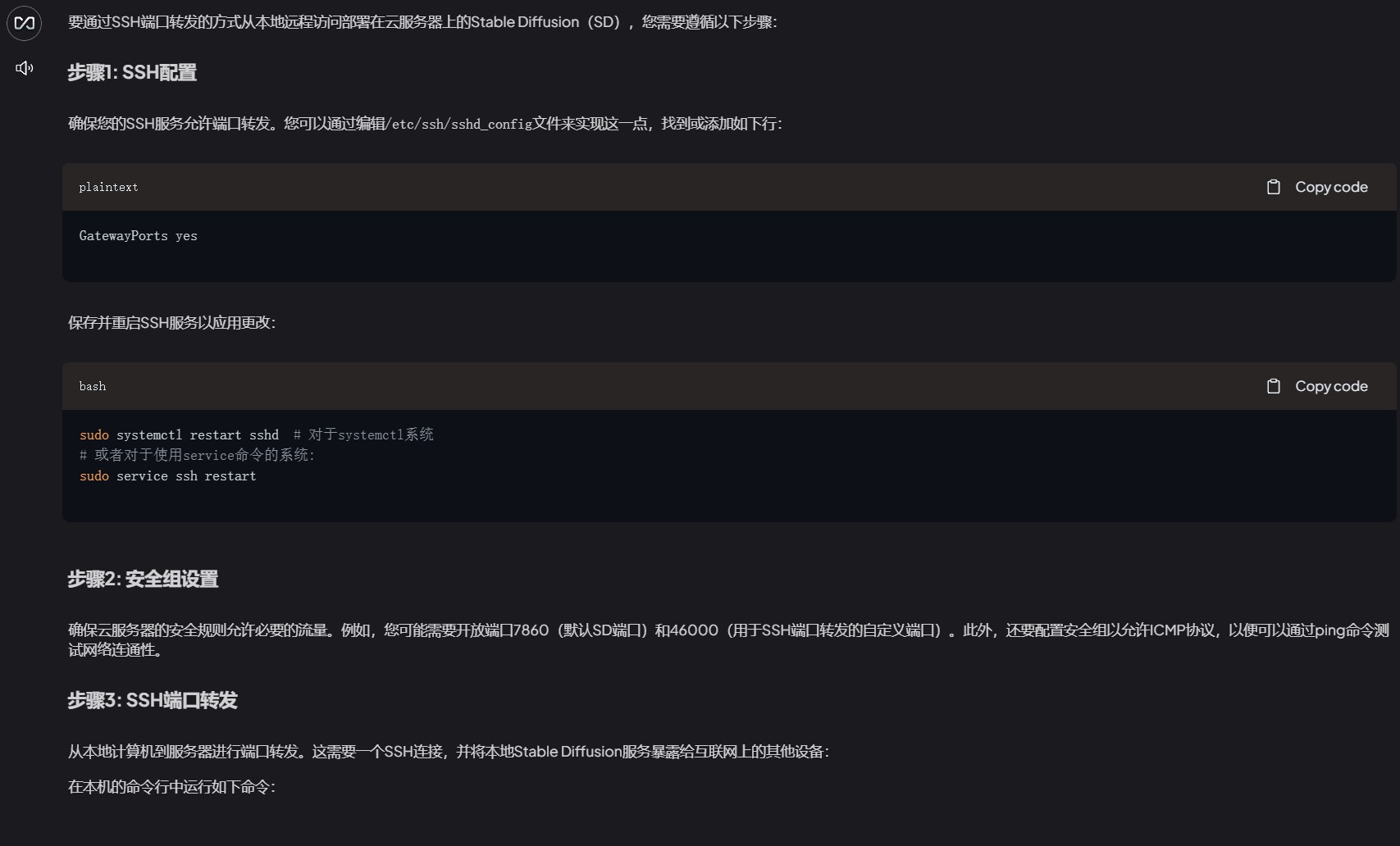 提问:SSH端口转发远程访问 Stable Diffusion的方案
