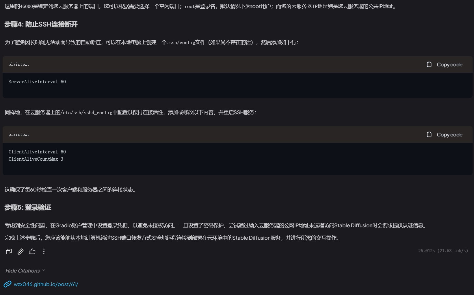 可以看到,现在 AI 的回答引用了我的博客的内容并将网址显示在Citations中。